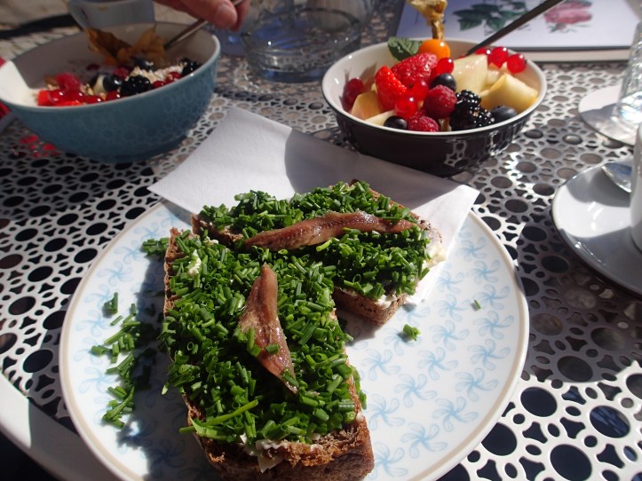 After Vienna we headed to Graz to visit family. When we arrived in Graz we were in need of lunch. It was a lovely sunny day, so we sat outside at a cafe (with our luggage). I had rye bread with chives and anchovies. It was delicious! So simple, yet so tasty. These Austrians know what they are doing.