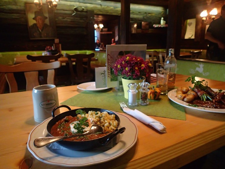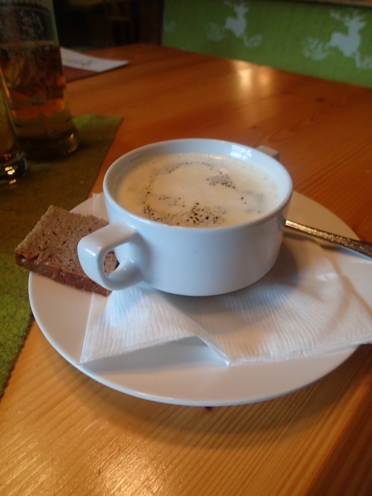 After checking in to our (also quite stunning) hotel, we decided to walk to dinner. In hindsight, probably wasn’t the best idea as it was rather dark and cold on the return journey, but hey, what are holidays for if you don’t do stupid things every once in a while. Dinner was at Waldschank Gasthaus. Of course it was delicious, we had began to expect nothing less. But the real highlight was the Kren (horseradish) soup that Steve ordered. A return visit was in order so I could order it next time.