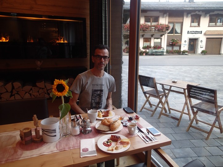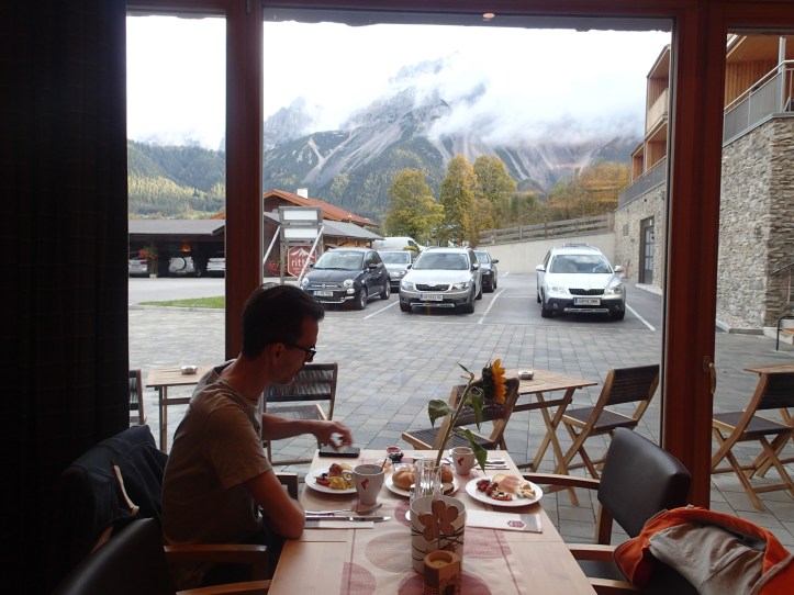 Breakfast at Rittis Chalets where we were staying, came complete with stunning views (just ignore the car park bit)