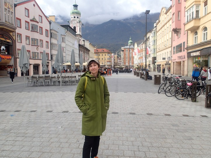 After lunch at the Wildpark, we got in to Innsbruck mid afternoon. After checking in to our hotel – the beautiful Goldener Adler, we went for a wander around the Old Town. I got to wear my awesome new coat.