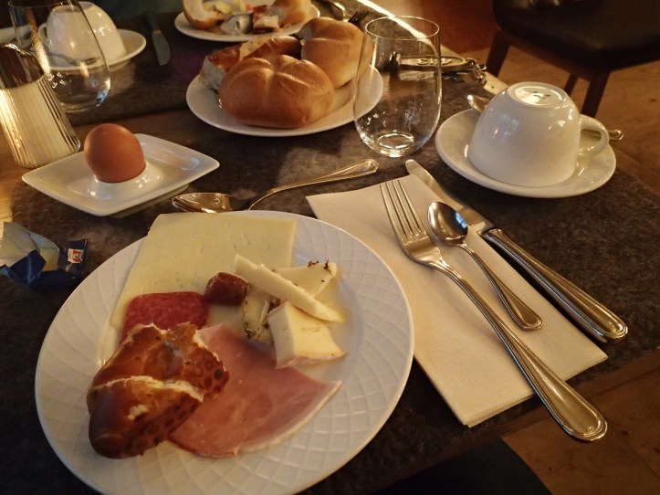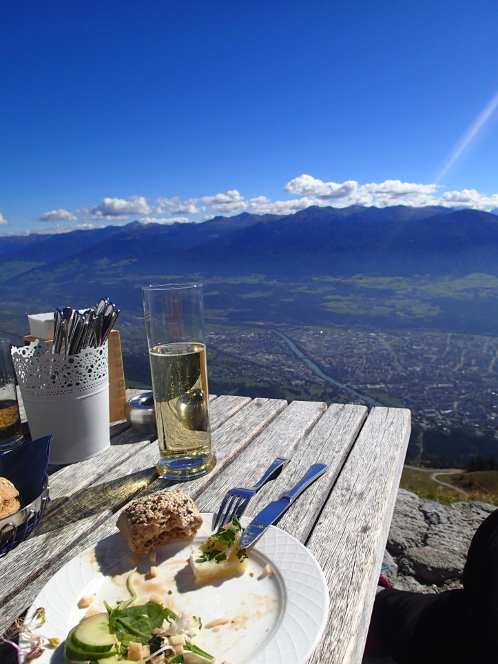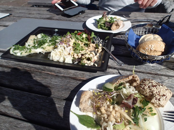 We had lunch up the mountain. Bread and cheese and salad. The cheese was a Tirolean specialty sour cheese. I can’t quite remember what it was called, but I will endeavour to find out and update this post accordingly.