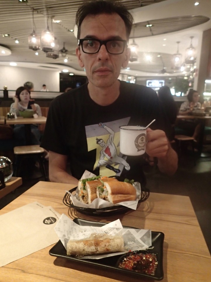 After an 11 hour flight we landed in Singapore where we promptly checked in to our hotel and fell asleep for several hours. Upon waking, we headed in to Orchard Road and went to get our favourite life-saving meal at Nam Nam Noodle Bar. A Banh mi and a Vietnamese coffee. Sure, it’s a chain place, but It’s the perfect meal and place for us when we are jetlagged in Singapore. And their Banh Mi is pretty darn tasty.