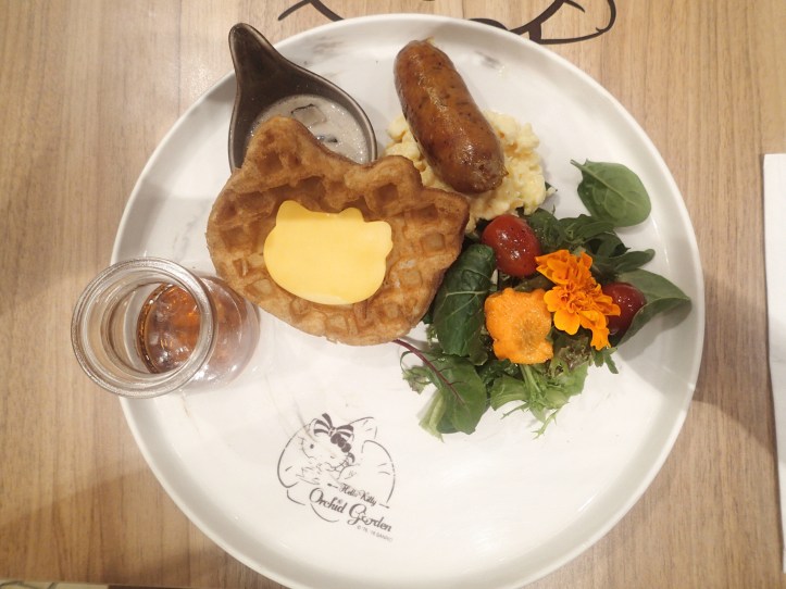 A small Hello Kitty shaped waffle with cheese and maple syrup, one sausage and a tiny salad. Look, it was tasty enough, but I was still hungry after I ate it! I was, however very used to Austrian and German breakfasts after all.