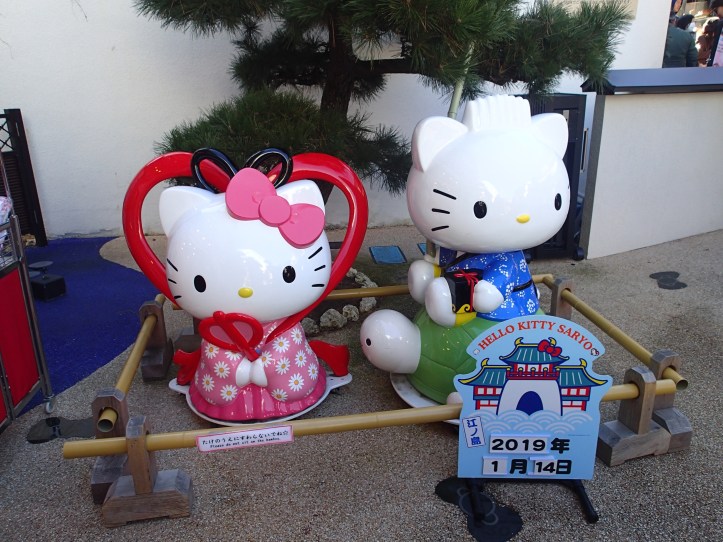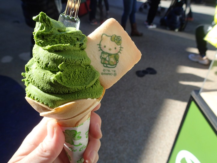 Enoshima was great. We couldn’t believe we had never been there before. We walked along the little street filled with cute shops and restaurants. Then we found the Hello Kitty icecream and tea shop. I had a Matcha icecream. Steve had a matcha drink. Yum!