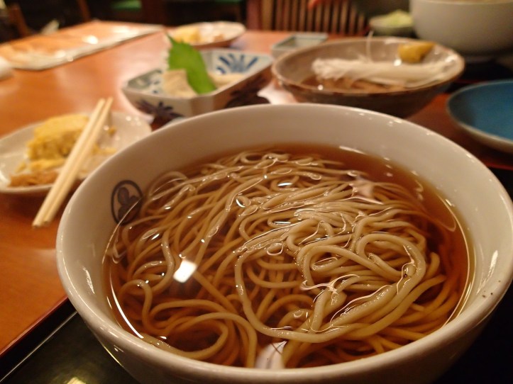 Today we headed out in search of soba. Yes, I will admit we only discovered this place because we saw Anthony Bourdain go to it on an episode of Parts Unknown. Sarashina Hori has been a soba restaurant for a VERY long time. Like, over 200 years. That’s pretty crazy. It was relatively quiet when we got there so we easily got a table. We both ordered Hot soba and got some side dishes too – Yuba, Simmered pork belly and tamagoyaki.