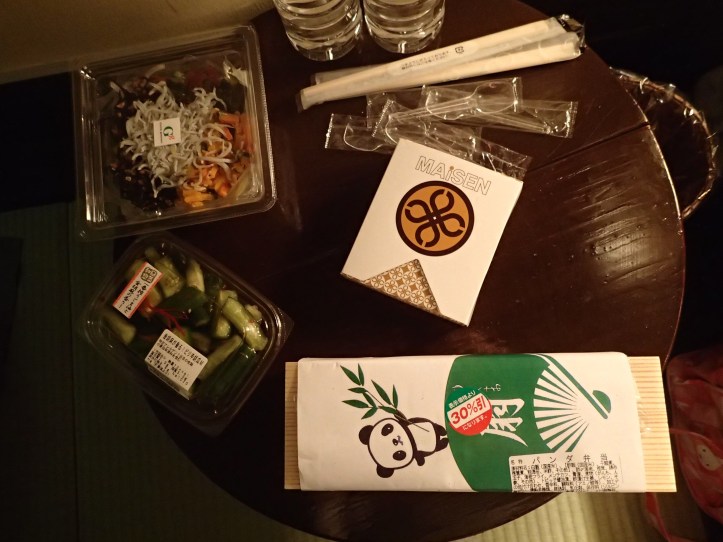 We spent the rest of the afternoon in Shibuya before heading back to Ueno where we bought bento for dinner, which we ate back at Andon. I had the panda bento.