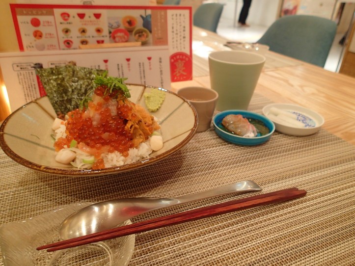 In Ueno I went to OiOi department store where I had dinner in one of the Basement restaurants. I had Uni and Ikura on rice and it was very, very good.