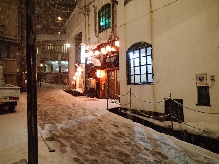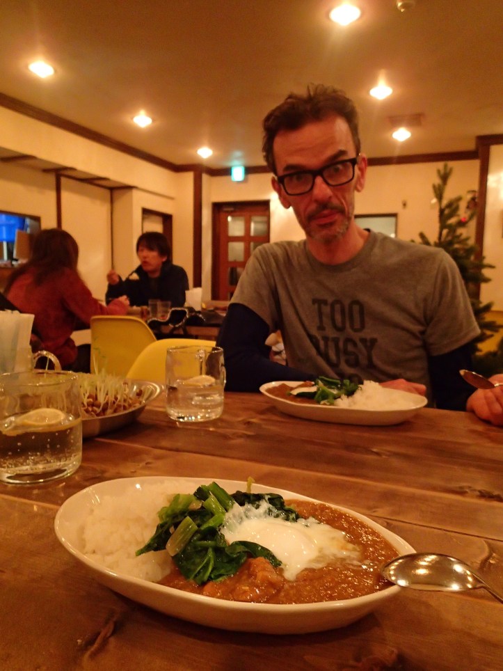 Another night it started snowing so heavily we had to duck in to the nearest restaurant we could find. It was a cute little place that served curry. We also met Steve’s work friends from Perth in there.