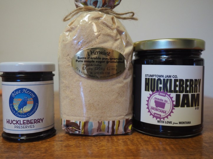 Huckleberry jam and maple sugar and maple butter. I love all things Huckleberry.