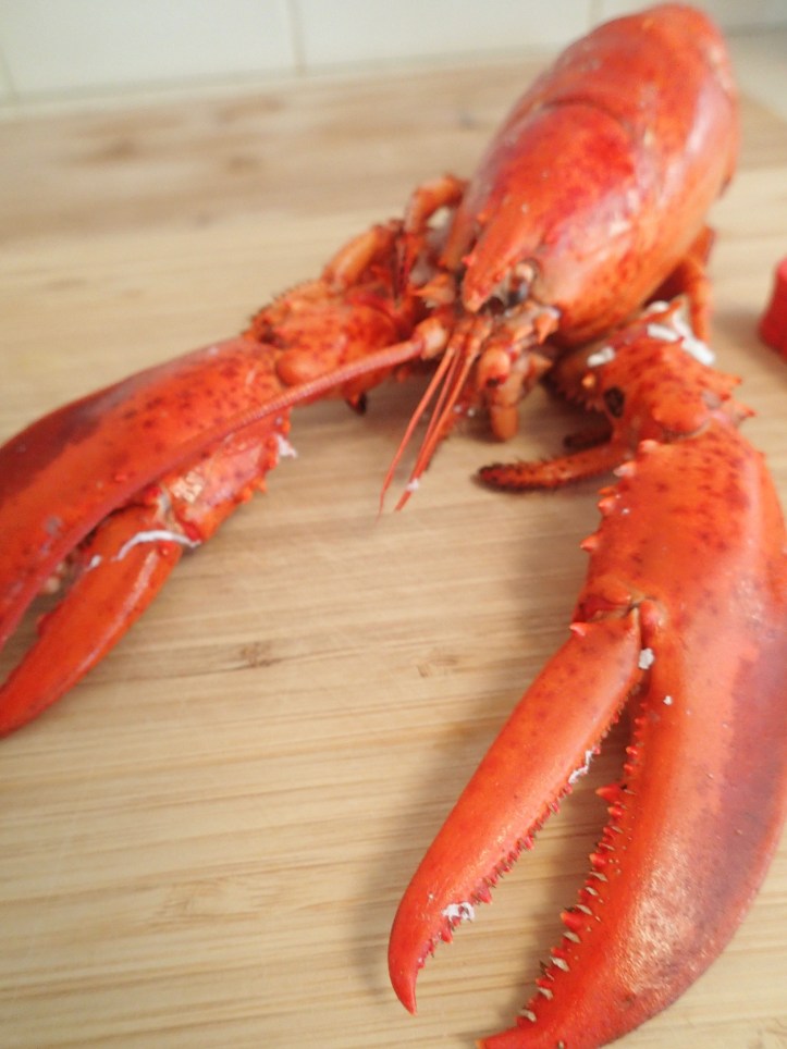 I was shopping for cheese in Aldi the other day. I mostly only buy cheese at Aldi. And sometimes chocolate. But I always check out there other stuff. Sometimes (usually around Oktoberfest time) they stock some good German products like sauerkraut amd celeri salat and the like. So I poking about through the freezer section when I saw whole lobsters. Wtf? Lobsters? At Aldi? On closer inspection, it stated in the box that they were from Canada and they were clearly of the same variety as my much beloved Maine lobsters. Hmmm…interesting…..very interesting…..Anyway, I put the lobster back in the freezer and made my purchases and went home.
