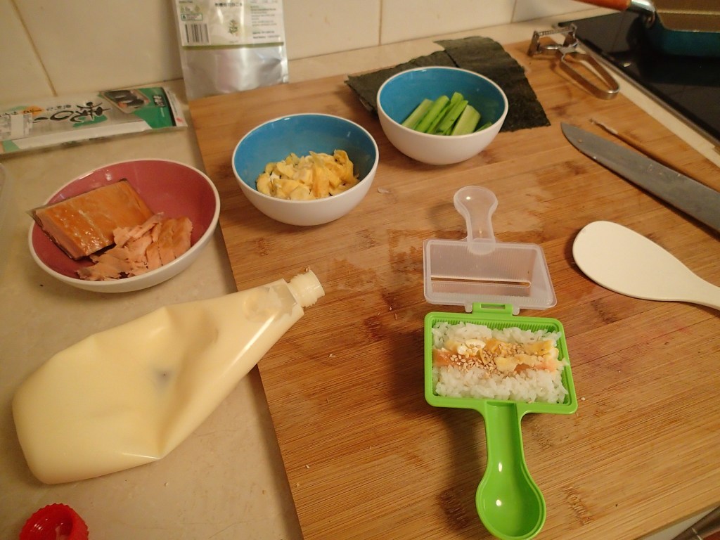 Luckily when I found out about the Daiso store I was still on my Christmas School Holidays – so I jumped in my car and drove out there. It didn’t disappoint. Although apparently as with all things Perth, it’s more expensive- everything is $3.80. I didn’t waste any time buying a whole lot of essential items (mostly kitchen gadgets) but one of the coolest things I picked up was this little sushi maker contraption.