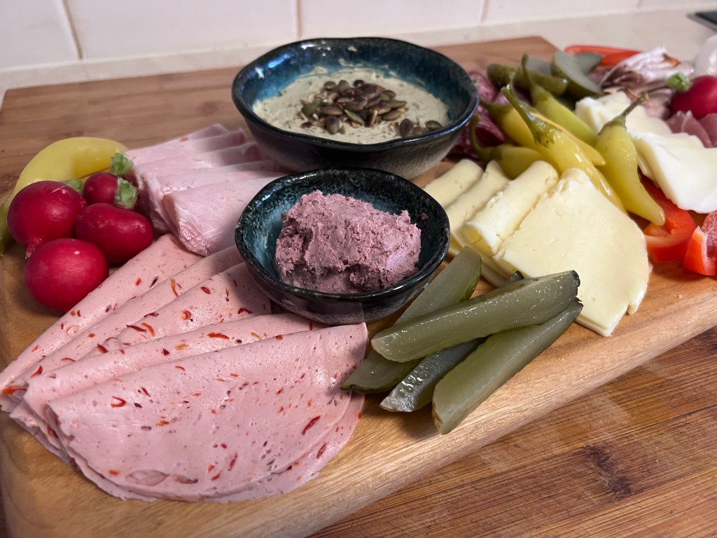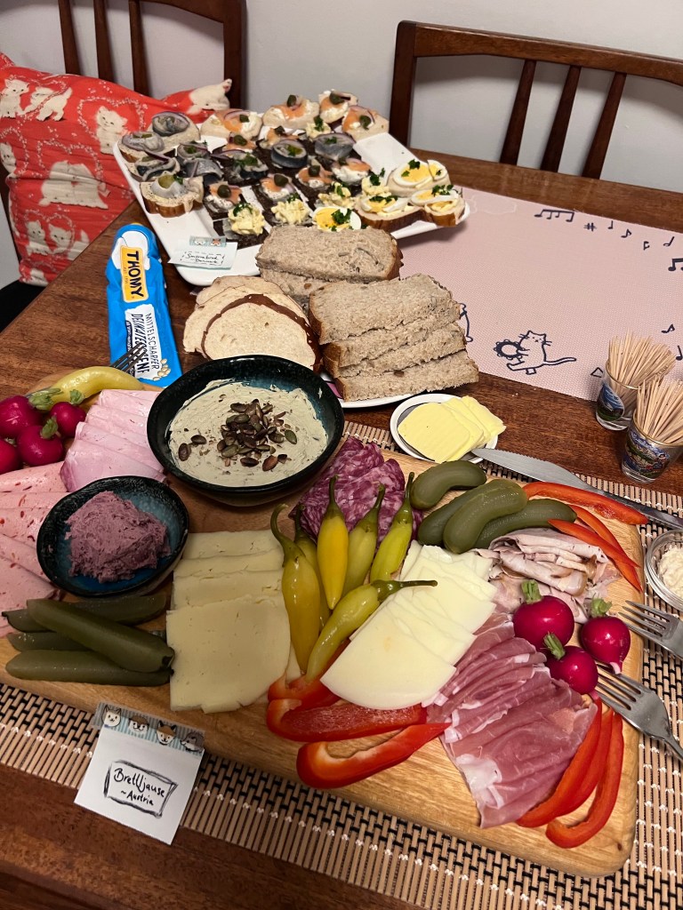 An interesting addition to the Brettljuase was Pumpkin seed oil cream cheese. Now regular readers of my blog are probably familiar with my love for Pumpkin Seed Oil (made only in Austria) but I had never thought of mixing it in to cream cheese before. And now that I have tried it, I can never go back. Delicious!