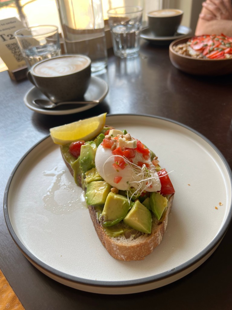 Steve ordered his favorite oats and chia porridge thing he had the other day, and I foolishly, trying to be be healthy (because I haven’t eaten a whole lot of fruit and veges over the last few days) opted for the Avocado and egg on toast which sounded pretty tasty. When mine arrived I noticed that there was some real avocado on the toast but the majority of it was that horrible pre packaged, pre made guacamole. Ok, I guess I’ll deal with it…but as a result, the toast was so, so soggy. Like not a little soggy, like you could pick up the toast and wave it around like a flag. Not cool. So I went and asked if I could get another piece of bread because look, this is gross. They weren’t exactly thrilled with the idea of providing me with another bit of bread, but eventually they agreed. The meal was still pretty revolting though – I’m not entirely sure how you stuff up avocado on toast so badly. But here we are.