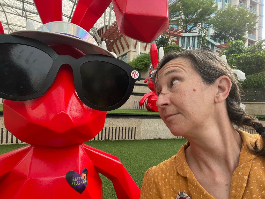 We got out at the first station which was crazy busy with people going to / leaving Universal Studios. Also there were all these bunnies.