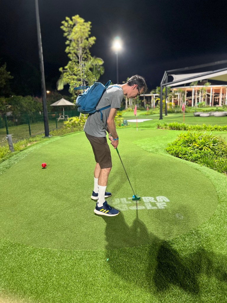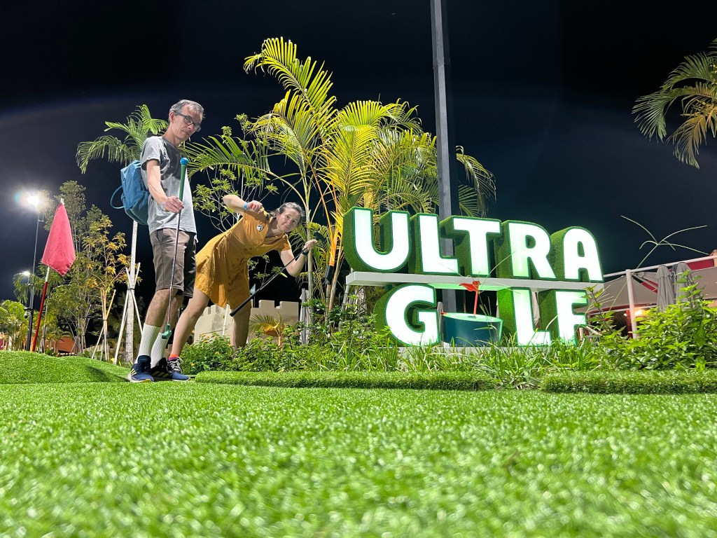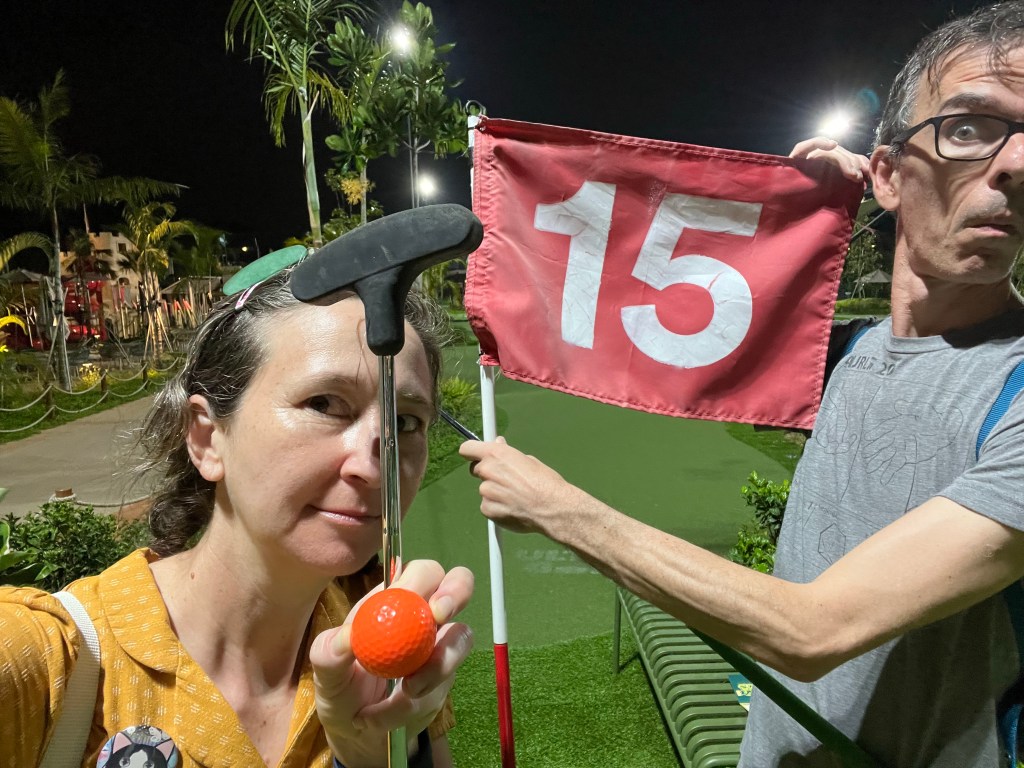 After a couple of drinks and after the sun went down and we falsely believed it to be a little cooler, we decided to have a game of mini golf.