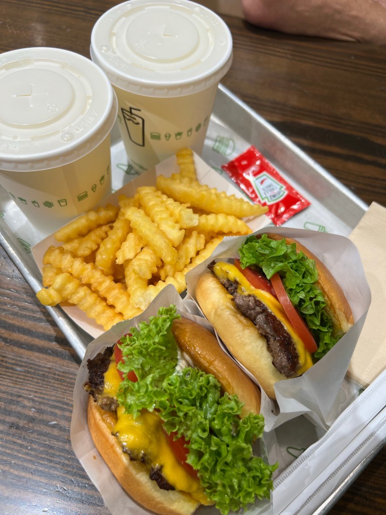 We decided we had better head back to the mainland, it was a Monday night and everything was beginning to shut down on Sentosa. We kind of needed dinner, but there wasn’t anywhere great to get any. So after a swift walk across the bridge/boardwalk back to Vivo City – we got there just before 9:30pm – and the shops & restaurants close at 10pm – we quickly decided to grab some burgers at Shake Shack, because it was there and open and look, they are delicious burgers.