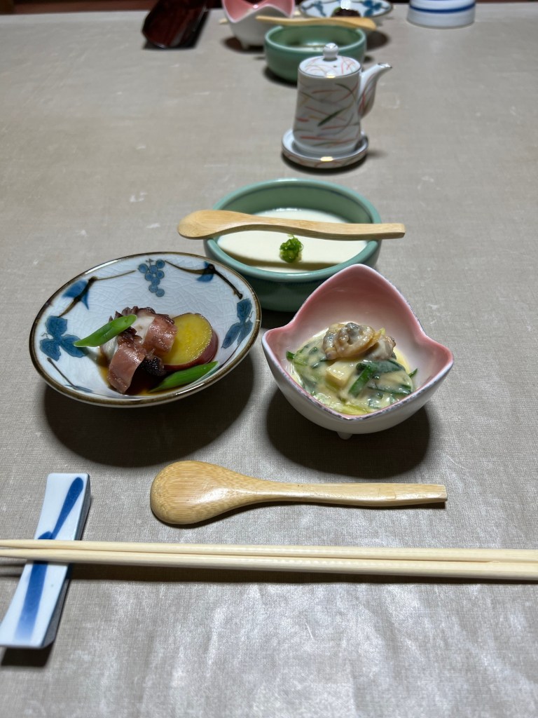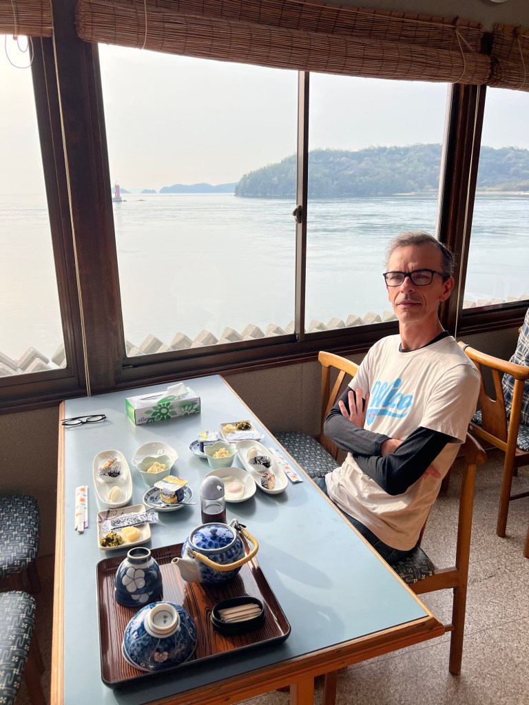 Breakfast at our ryokan this morning. I think I was still full from dinner the night before…but breakfast was exquisite- complete with ocean views. There only seemed to be one other family staying here.