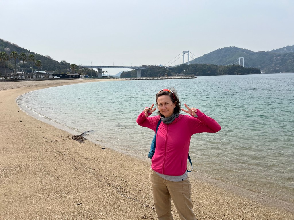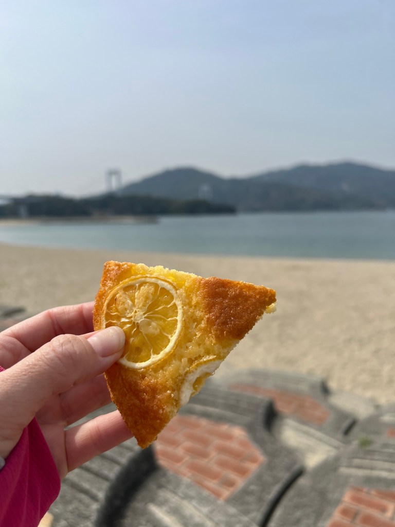 But first, a stop off at a “Eki no Michi” (roadside stop – kinda like a truck stop I guess, but good) for a Mikan juice, lemon cake (that cost $1) and touch of the ocean. Always got to touch the water wherever I am in the world!