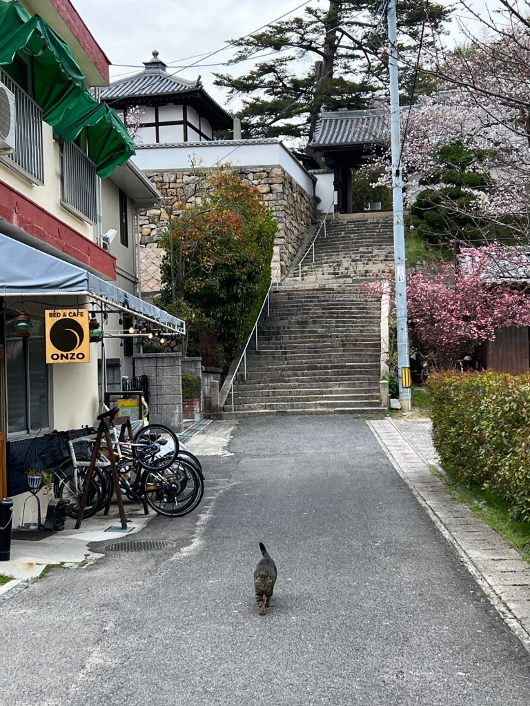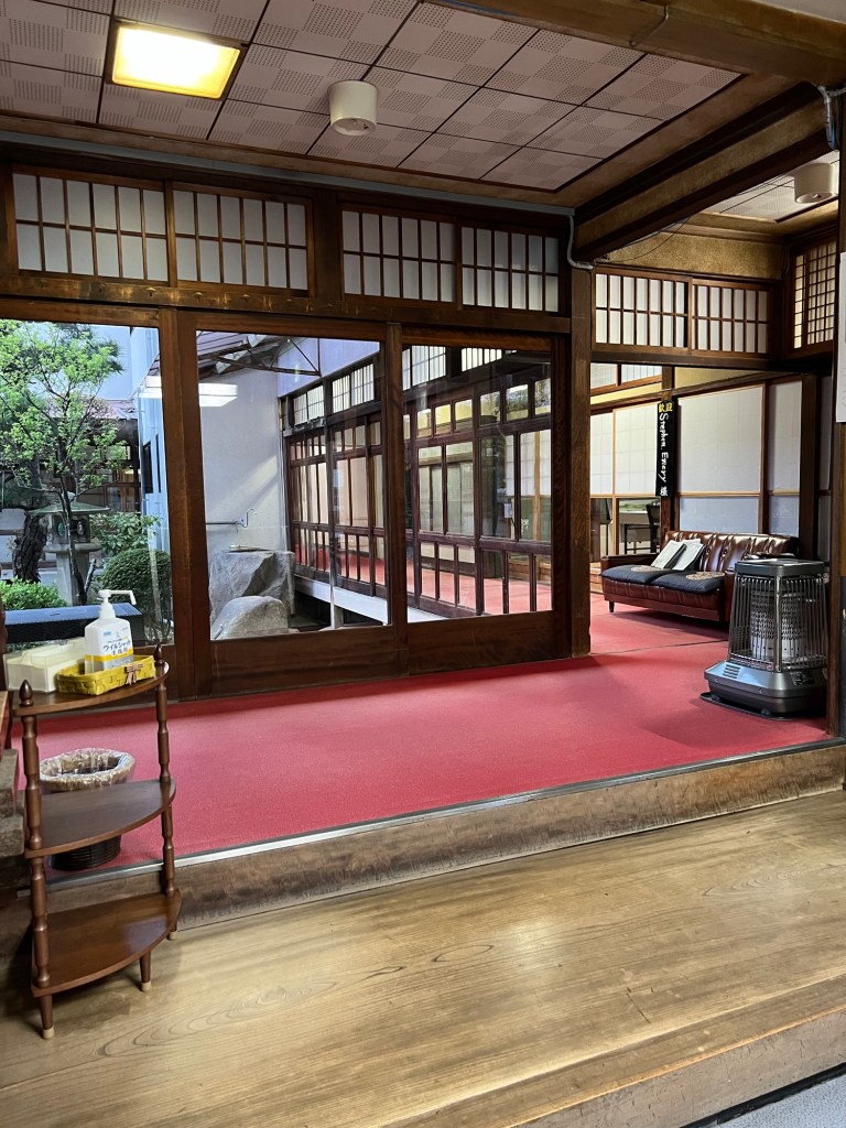 We made it to our accommodation around 4:30pm which I was very glad about as my legs had just about given up. Much to our surprise, the area around our accommodation was quite busy with lots of cute shops and cafes and our ryokan is AMAZING. Real old school traditional- this place has been here for like 100 years. It’s super cool.