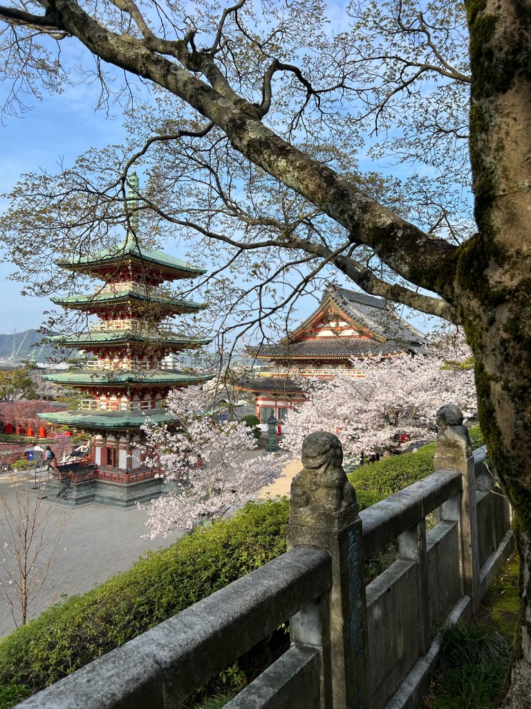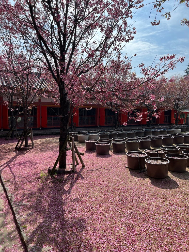 Outside of the cave there was a huuuuge statue and more Sakura and interesting parts of the temple to see.