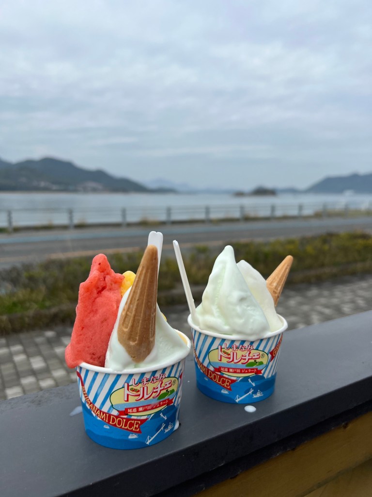 I got Hakata sea salt, Mikan and strawberry and Steve got lemon and Hakata sea salt. Nice icecream. Nice-cream in fact.