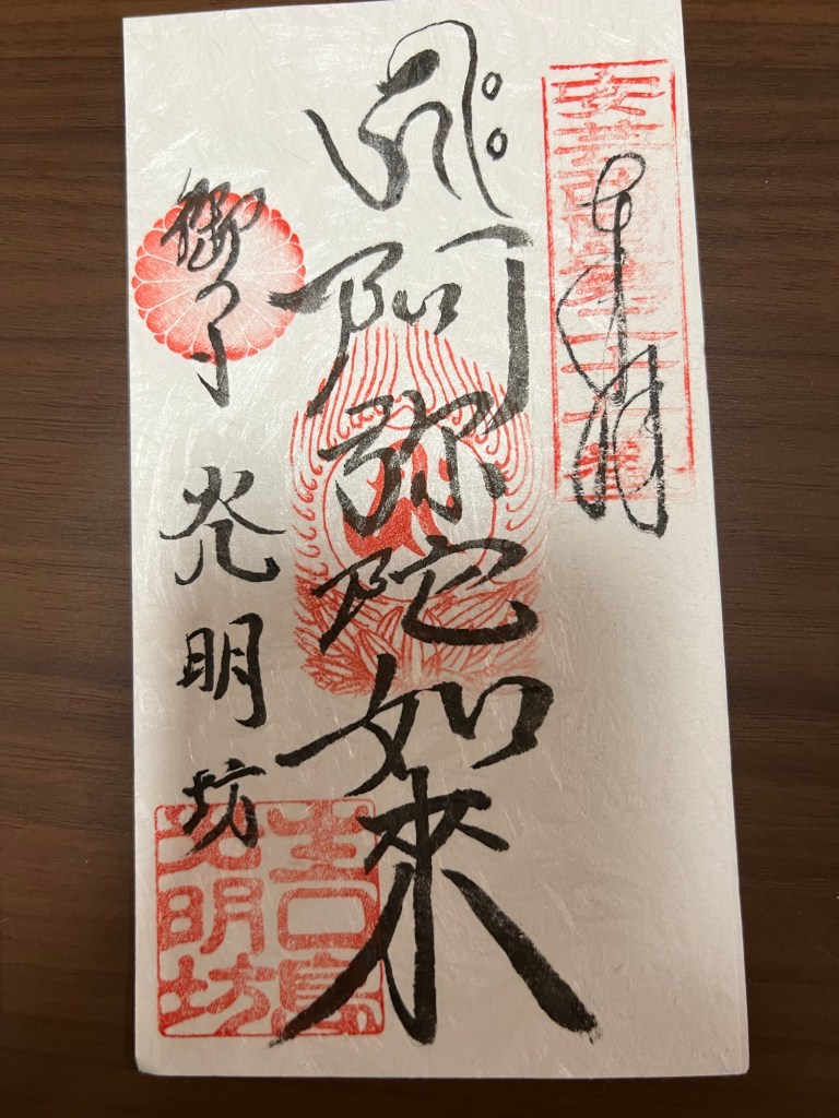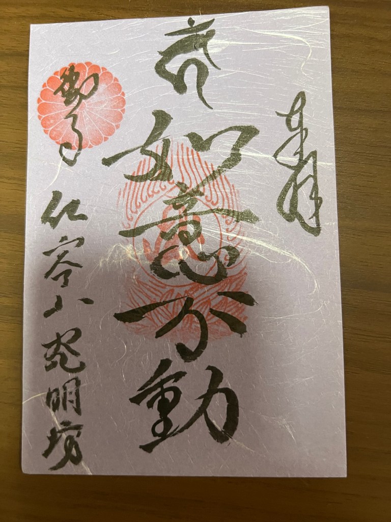 We stopped by a small temple and parked our bikes to have a look. A small girl was riding her scooter out front and when we arrived she ran in to the house on the temple grounds. We had a Quick Look around and then started to head off when the girl came out and came over to us and handed us some Goshuin – “Goshuin are large stamps, handwritten by monks, that work as a kind of proof that you have visited a specific temple or shrine” (thanks good for the explanation) we said thank you many times over before heading off. It was very sweet.