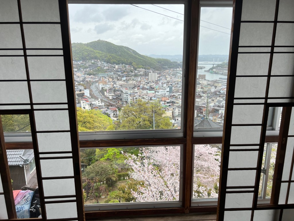 The view from our accomodation is next level. It’s a trek and a half to get there – up about 20,000 steps, but it is worth it. The place is an old tea house that is over 100 years old that has been converted into accommodation. Our room is tiny (3 tatami mats) but the view makes up for it.