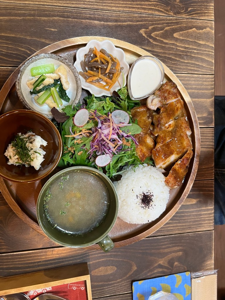 Steve got the chicken lunch set menu and I got the fried mackerel. We weren’t entirely sure what we were going to get (my Japanese reading skills + Google translate can only get us so far) but when they arrived they looked spectacular- and tasted even better! So reasonably priced too – mine was about $9.50 and Steve’s was $12.
