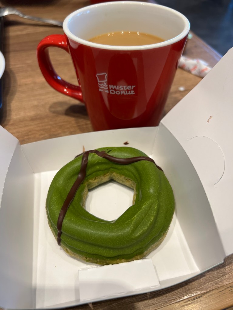 We were keen for a coffee, But, it was really cold and we couldn’t find a cafe that had cosy indoor seating – most were just takeaway. So yes, we went back to Mister Donut – because those matcha donuts are amazing and their blend coffee is toasty hot.