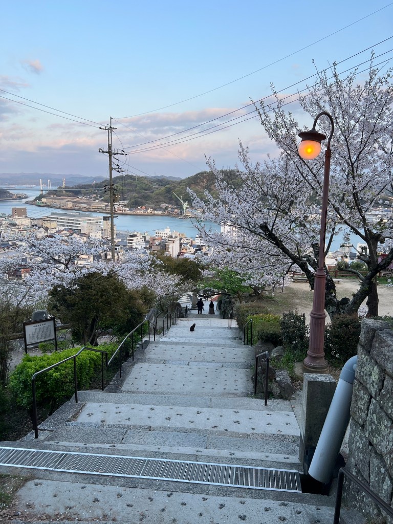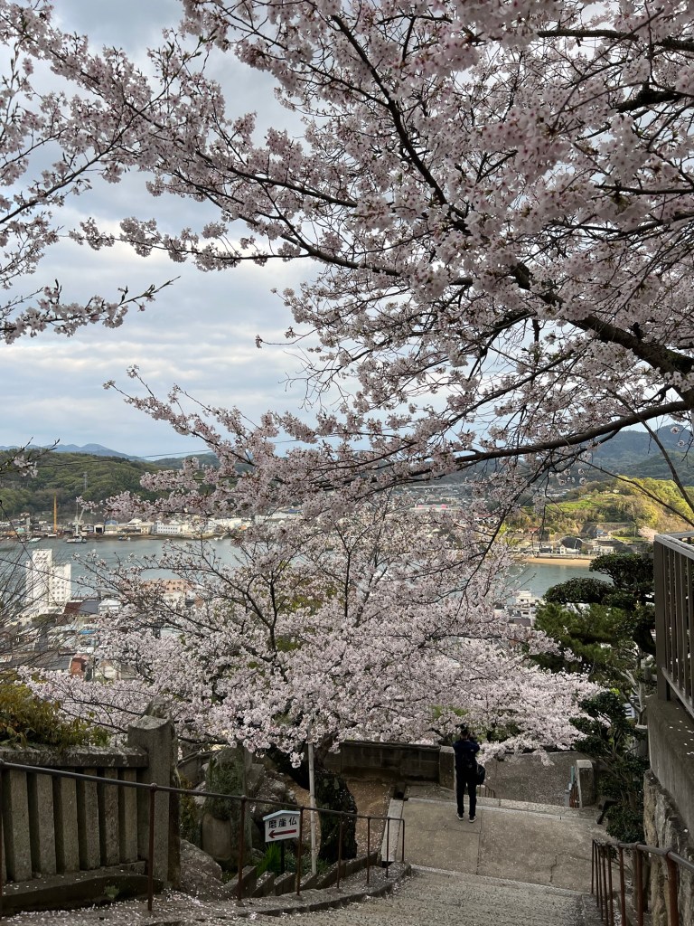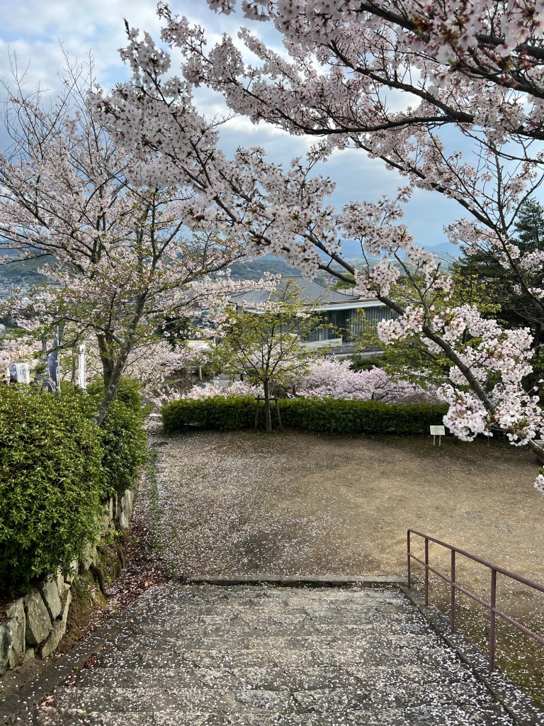 Walked back up the hill to our accommodation and after dropping off some stuff headed up even higher to some temples at the top of the hill. Spectacular views greeted us. It was really cool up there. Also, there were many cherry trees again.