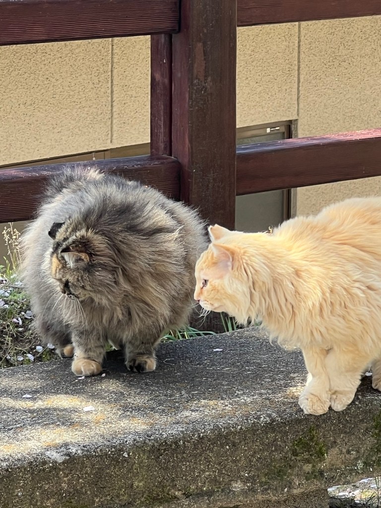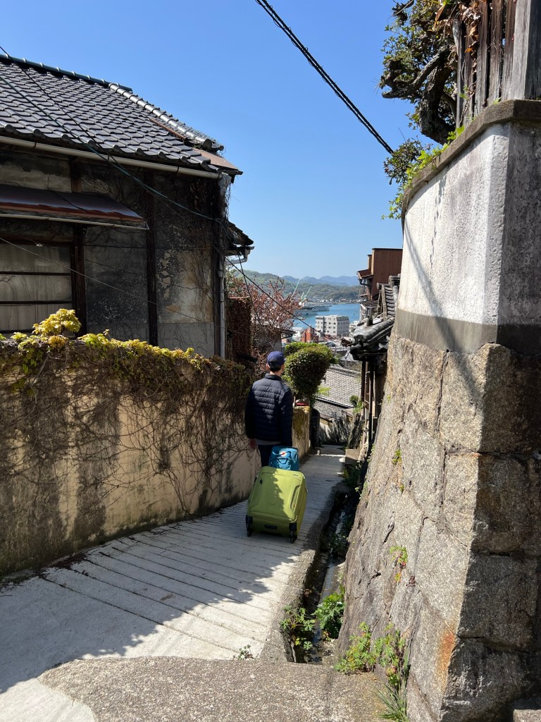 We had to lug our suitcases down the big hill. Luckily we found a sloped path and didn’t have to rely on the steps. We saw some cats – they were getting a brush and some food from a local man. The stray cats are well looked after around here.