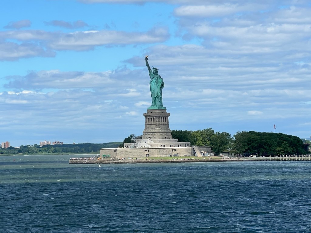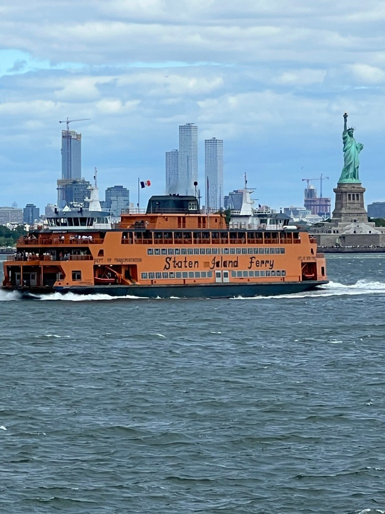 It was a nice walk over the bridge with lovely views. Once our walk was successfuly completed we caught the subway to Bowling Green to see a “sea glass” carousel. The carousel was actually not very exciting but we realised we were now at the Staten Island Ferry terminal so decided to catch the ferry for a scenic boat ride – extra bonus it is FREE! It goes past the Statue of Liberty and was quite a lovely trip. Once we got to Staten Island we jumped on the next ferry and headed back across.