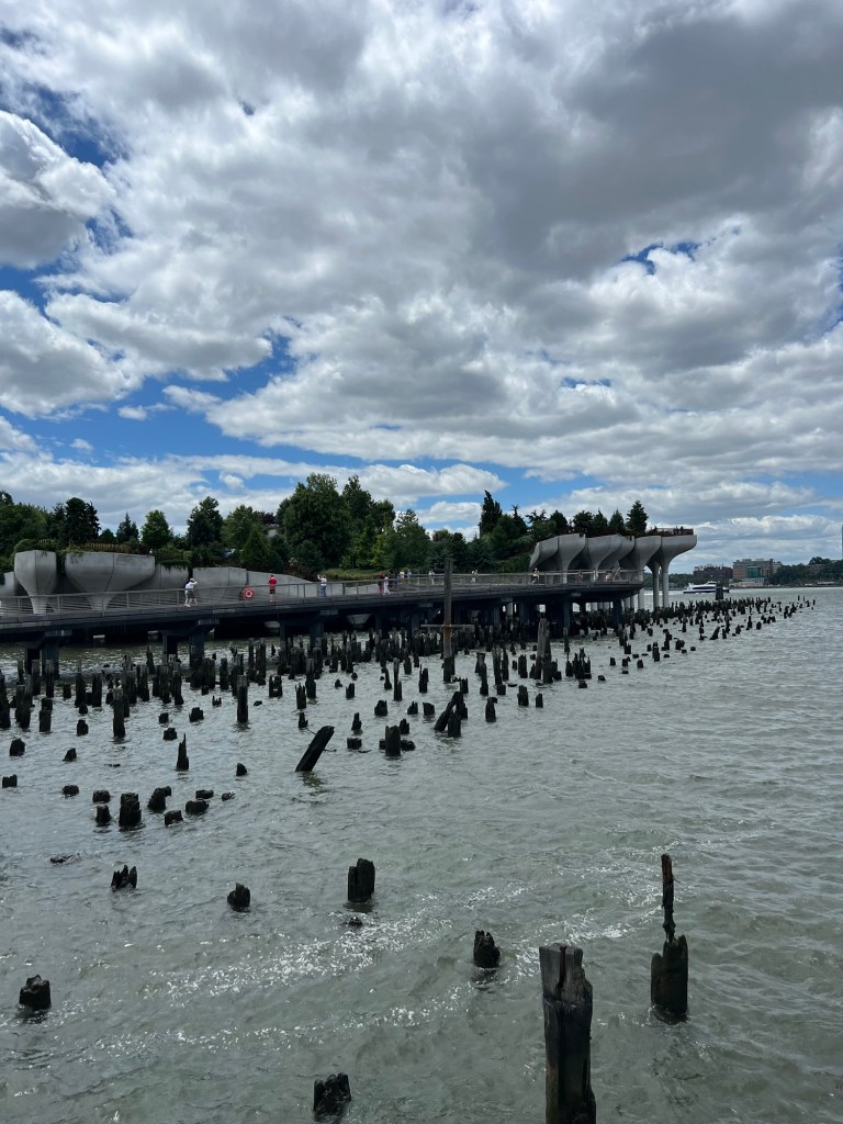 After lunch we walked down to “Little Island” which is a cute little man made island structure thing that you can walk around and stuff. It had gotten soooooo windy though. Like really gusty – and as I mentioned earlier I was wearing dress today. Not ideal. Also I was actually cold!