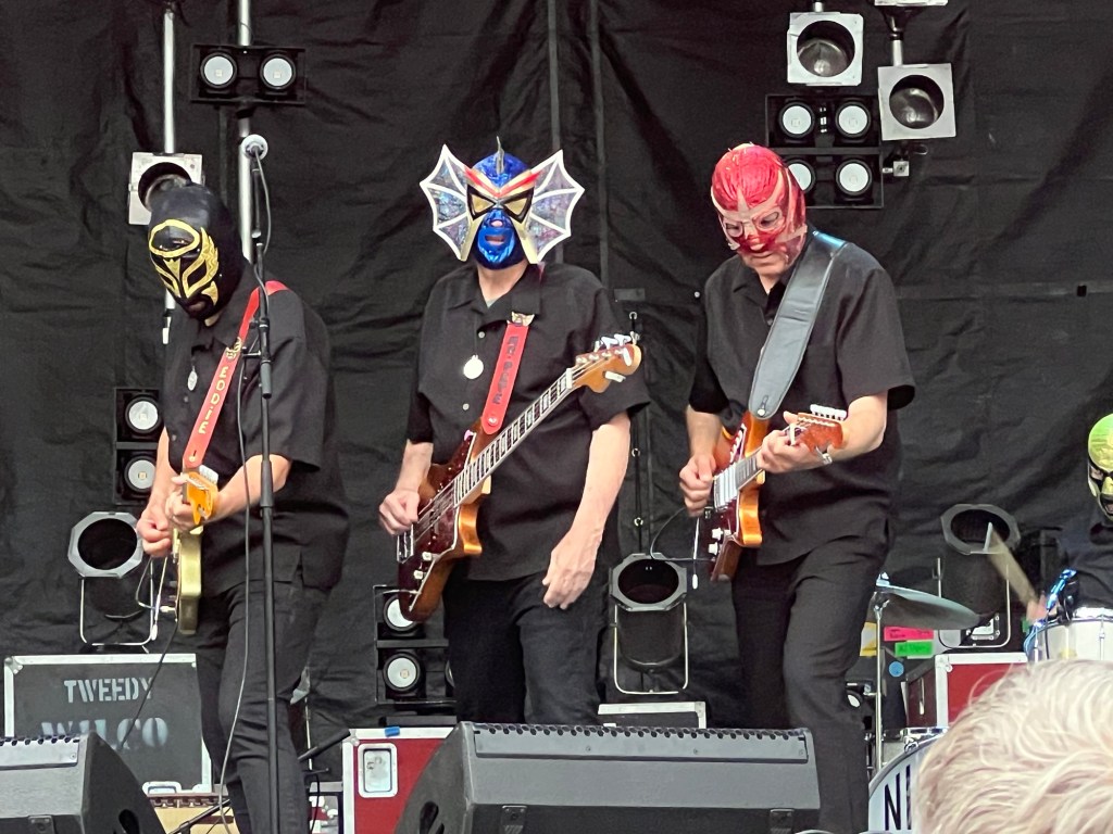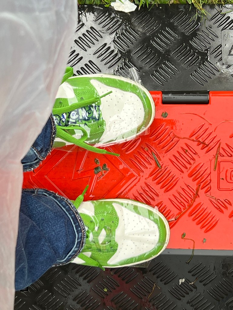 We headed over to Joes Field to get ready to see Nick Lowe and Los Straitjackets. It was raining quite a bit by this stage and I was worried about getting wet feet. We had ponchos but that doesn’t help your feet. I needed shoe ponchos asap!