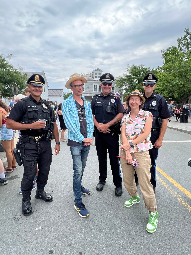 After the parade we took a walk around, checked out the free hotdogs (didn’t have one) and got this awesome photo with some lovely local policemen.