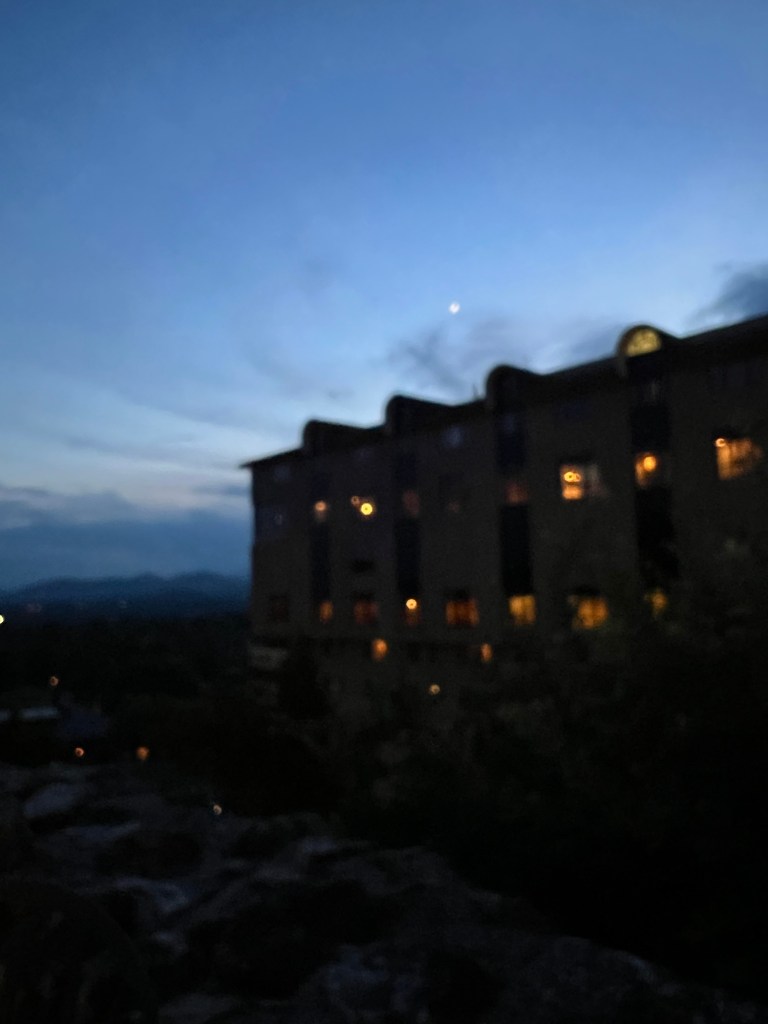We watched the sun go down over the Blue Ridge Mountains before heading back inside the hotel complex to have a bit of an explore. It’s crazy huge. We watched a little documentary about the guy that originally built the place – made his fortunes with tonic & quinine. Quite interesting.