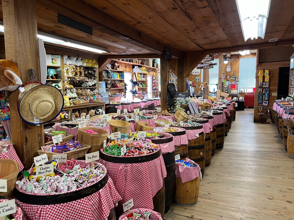 After spending way too long in there and only buying a pair of sock monkey socks, we went down the street to the Mast Store annex and looked at more things. They have a huuuuuge candy selection – you can fill up a basket with candy and pay by weight. We have already eaten more sugar this trip than we likely have all year so we sadly didn’t buy any candy as tempting as it was. I can imagine kids going wild in here – Piper I’m looking at you 🤣