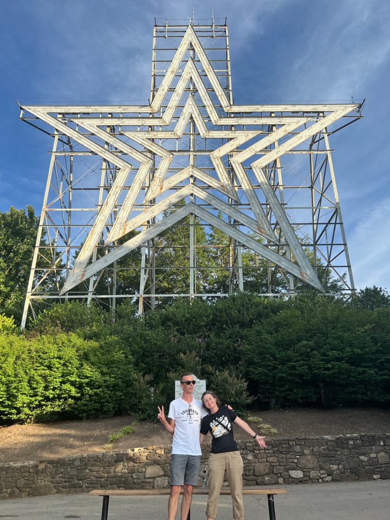 On the way into Roanoke we stopped by the “Roanoke Star”. It’s the biggest steel star in the world or something like that. It was pretty cool. A nice lady took some photos of us in front of it. It lights up too but as mentioned earlier, it pretty much never gets dark here and we really needed dinner and we still hadn’t checked in to our hotel so we weren’t gonna wait around for that.