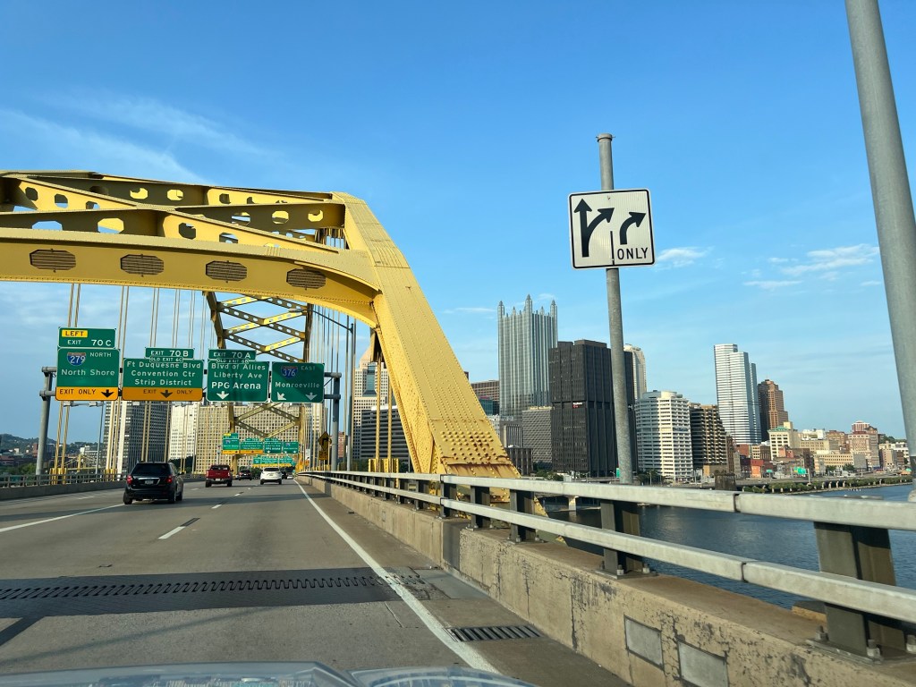 We went through a tunnel and popped out in Pittsburgh – we both exclaimed “Wow” – it was just a really cool looking city with lots of awesome looking bridges. Who knows if it’s *actually* a cool city – we had no time to stop.
