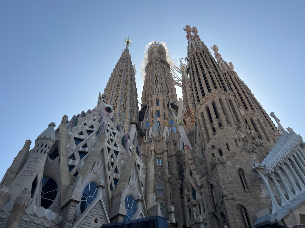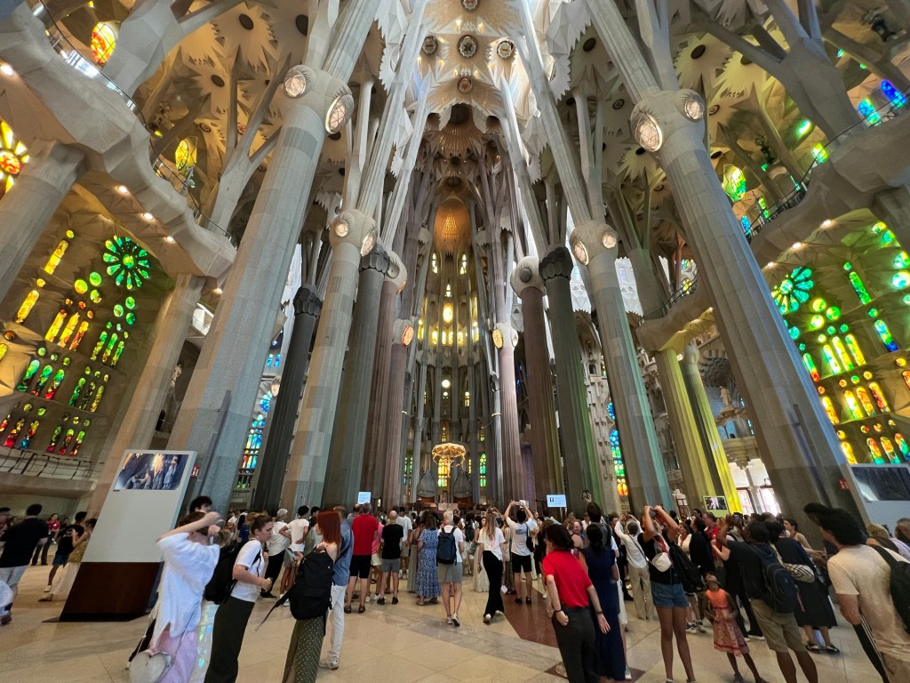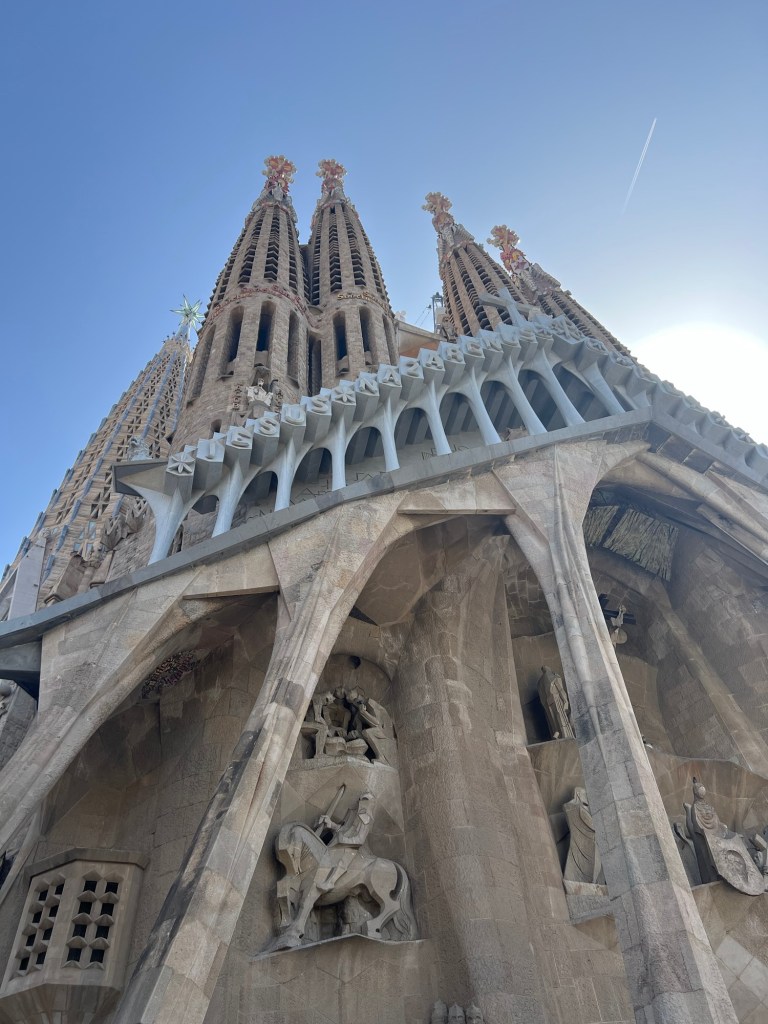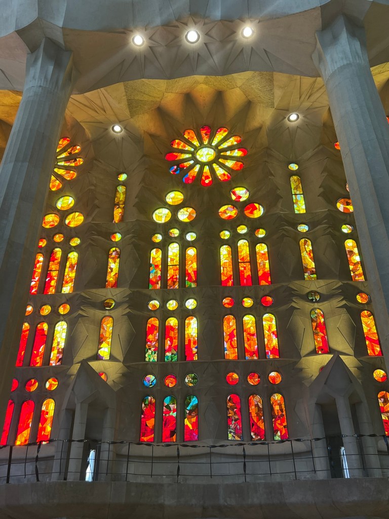 We were doing the only super touristy thing we have booked for this whole trip today – visiting the Basilica de la Sagrada Familia. So we headed off on the subway to our destination. We got there a bit early so had a bit of a wander around. There were a lot of people already gathering around the church but other than that we were surprised that the area was quite chilled and quiet. I was lead to believe it would madness around here, but madness it was not. Perhaps it was because it was a public holiday. Perhaps everyone was still recovering from their all night fireworks-a-thons. Who knows?