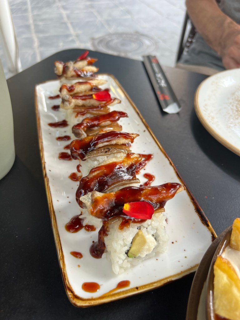 We had this really great Enoki mushroom sushi, crispy cauliflower and our first patatas bravas for the trip.