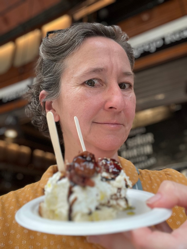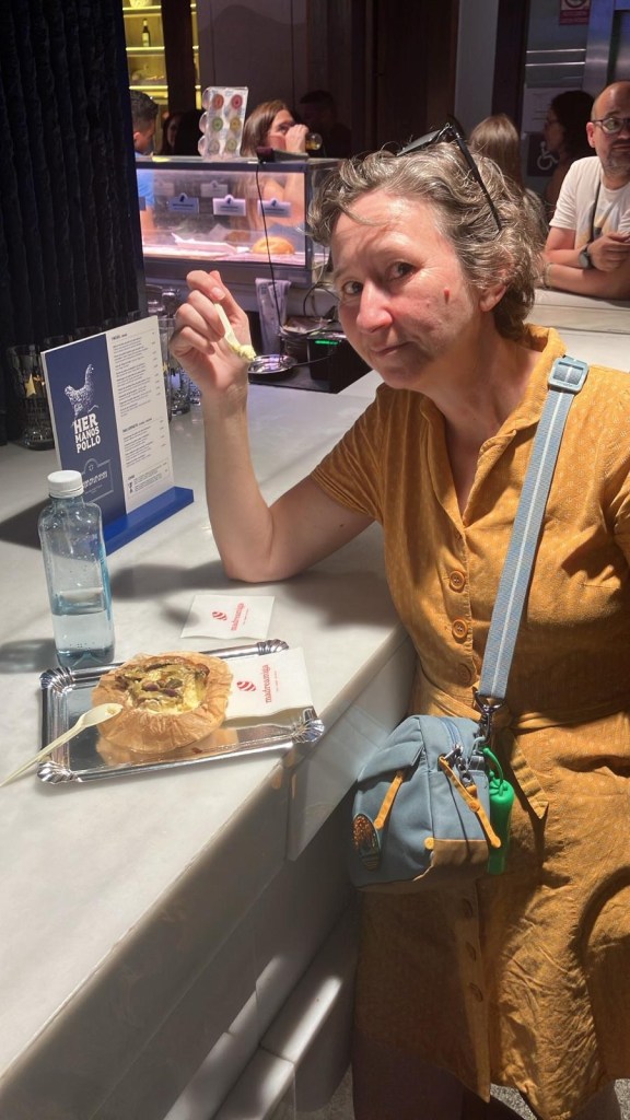Then it was on to the San Miguel market to get some dinner. It was really busy in there but we got some random things to eat. All very delicious – especially the crispy pork belly.