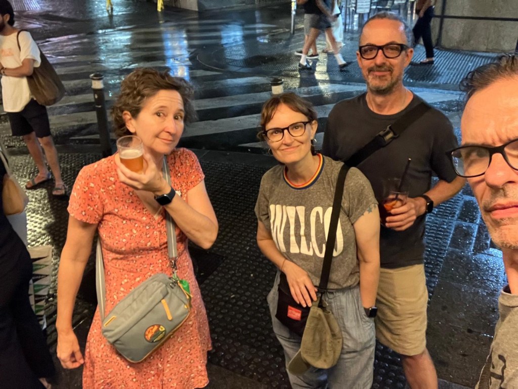 After dinner we met up with Piper and Brett at Bar as per tradition. When I say we were at the bar, we were really just standing on the street drinking our beers. Good times.