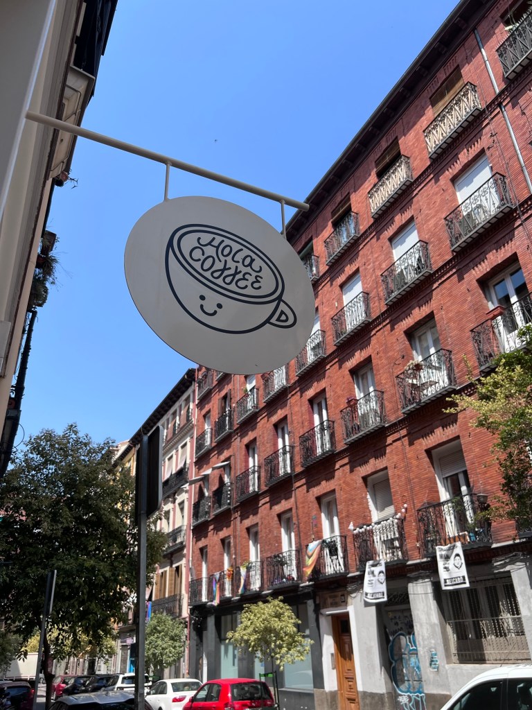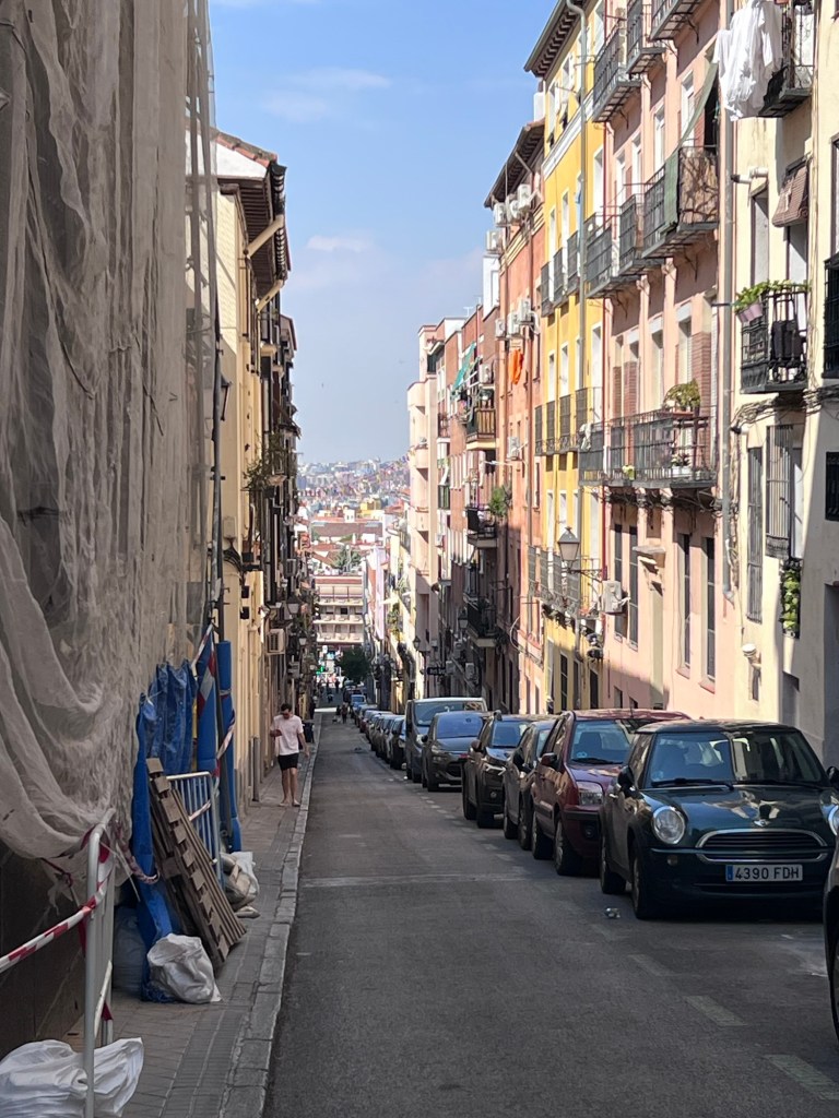 Today was a kind of wander around sort of day. After breakfast on our balcony we headed off to nearby Hola coffee for caffeinated goodness. We saw some nice views of Madrid down steep streets.