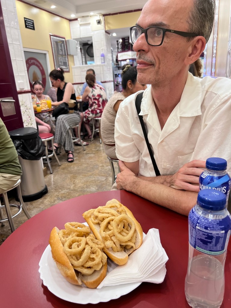 By this stage it was lunch time and though the only sensible thing to do was to have another calamares bocadillo – we did go to another place though – we chose the place with the long line. It wasn’t really a long wait though.