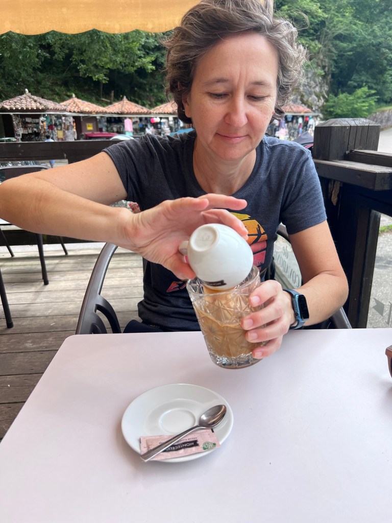 It was time for coffee now. I mean it was like 5pm or something but apparently that is coffee time here so we just go with it. We went into a cafe and ordered some coffees with ice – because that’s totally a thing – you get your hot coffee and pour it over some ice in to a glass! Best ever!