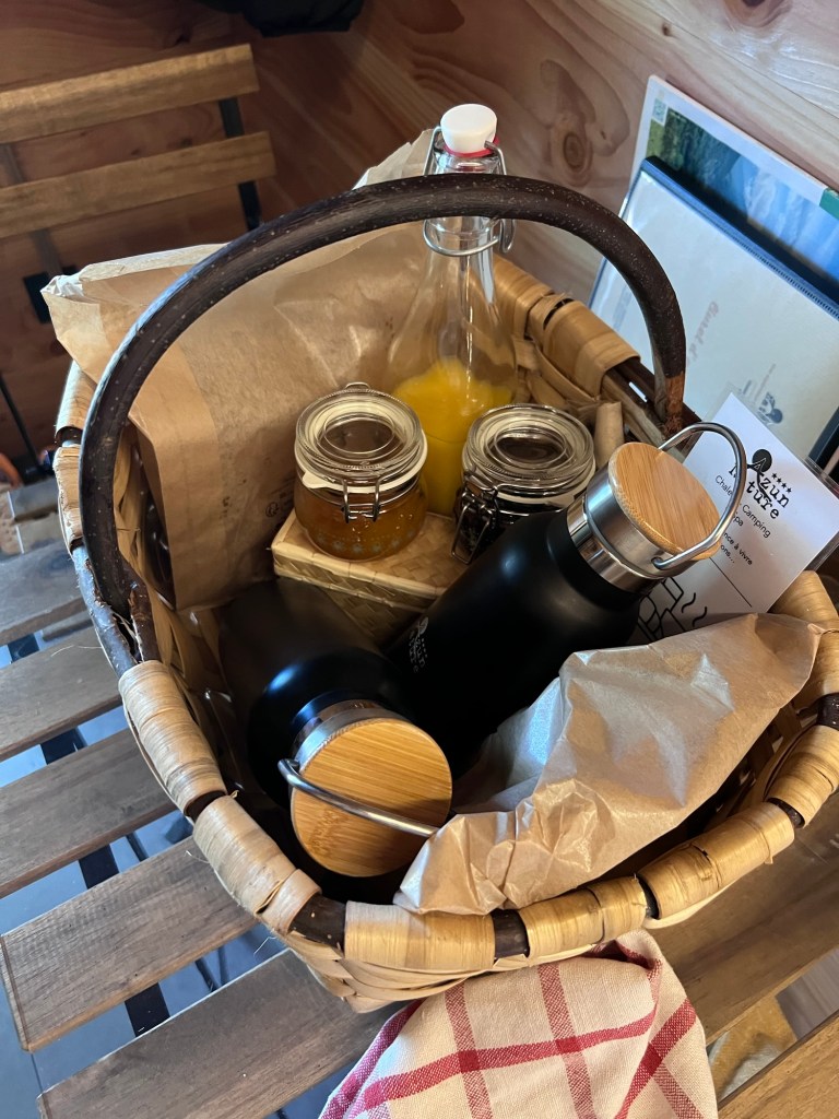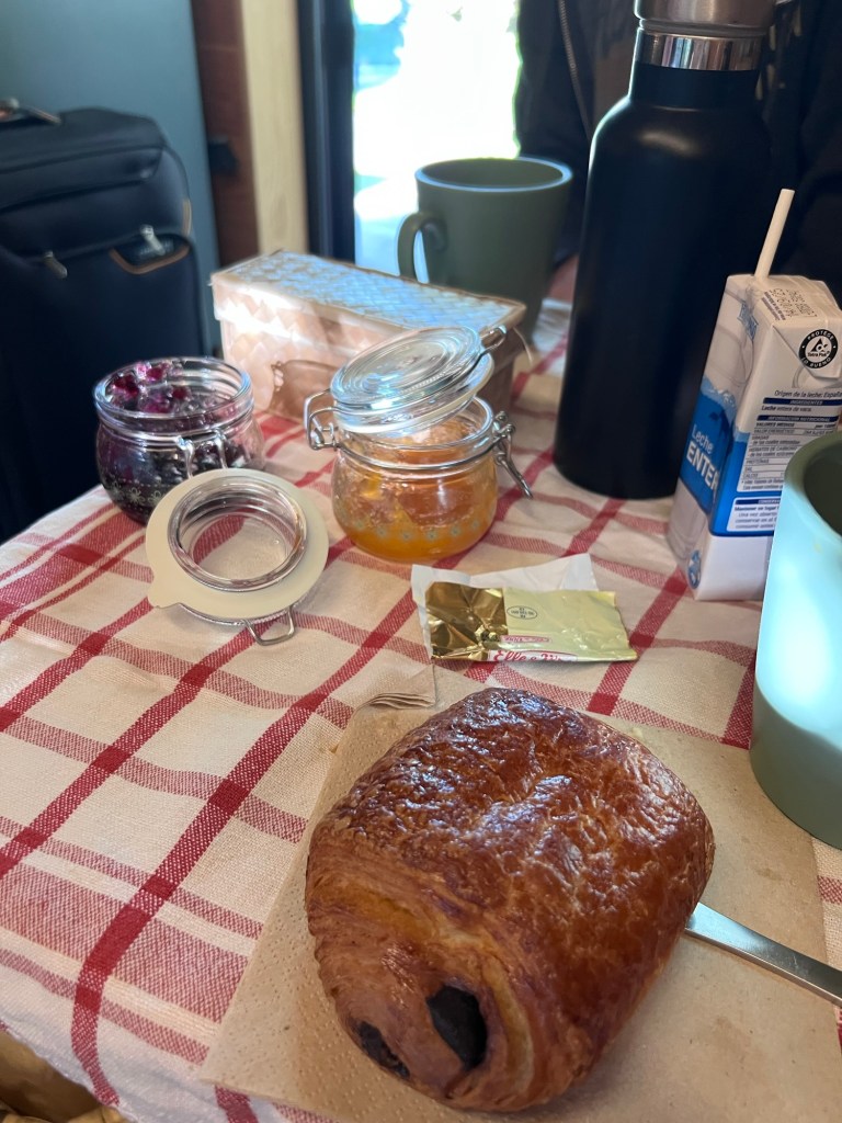 Our breakfast was delivered to our doorstep in a very French picnic basket. It contained – bread, croissants, preserves and coffee.
