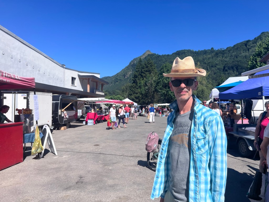 We went and checked out a small local market in the nearby town. Parking proved difficult because apparently the Tour De France is coming through here tomorrow. Who knew? Not us. So road closures, parking closures etc had already begun.