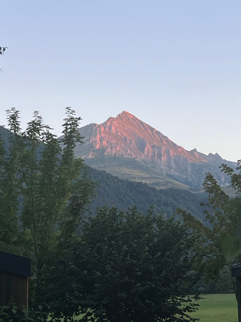 The morning brought rays of sunshine, blue skies and mountains vistas. And besides a few squashes on the paths, the slugs had all retreated to wherever it is that slugs retreat to during the day. A big slug nest probably. I do not want to even think about it.