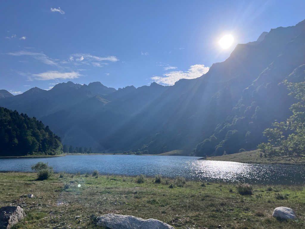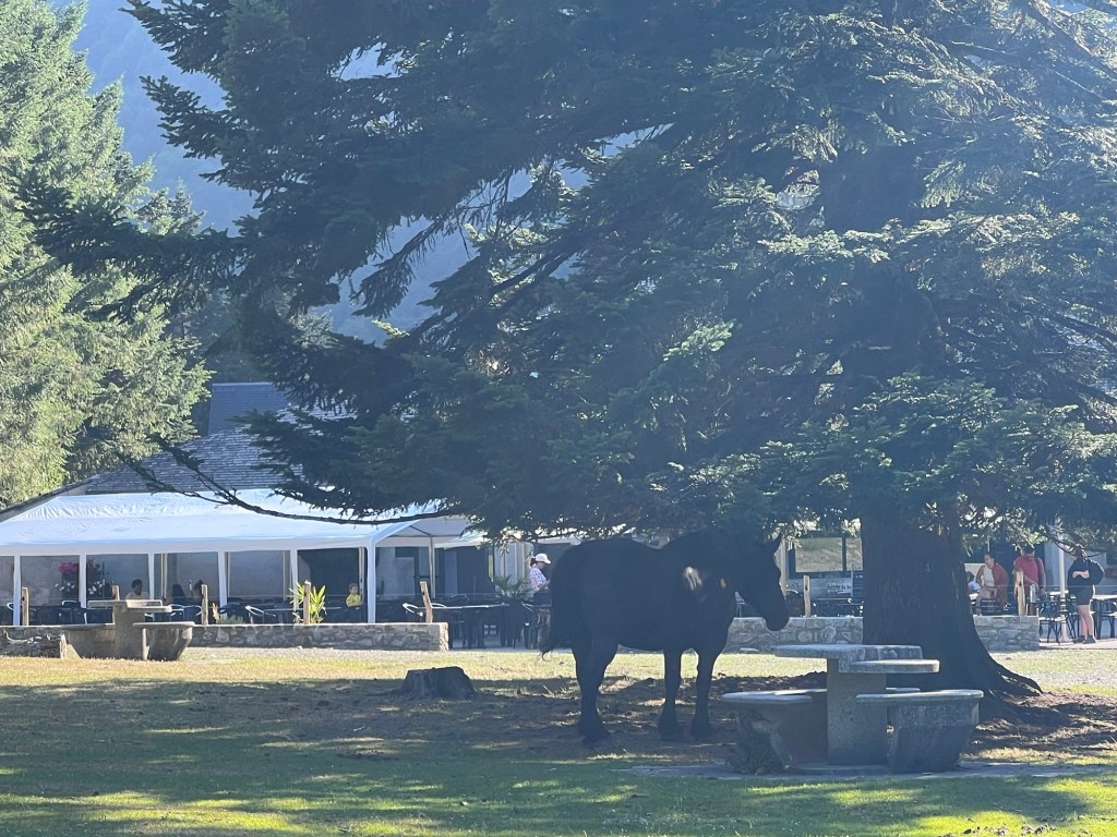 Very scenic around here. We went to a town called Estaing. There was a lake, mountains and random horses.